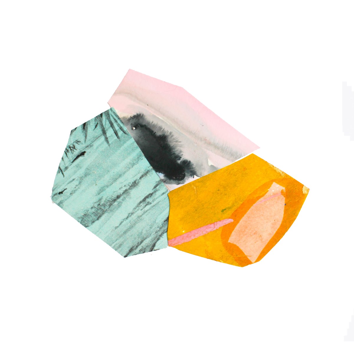 Cutting up pieces of my abstract paintings into polygon (ish) shapes and then creating collages is one of my favorite ways of creating art. I love mixing and matching colors that I wouldn’t usually think to put together- although, sometimes my OCD kicks in and I spend hours gluing and ripping off, and cutting down shapes, hoping to make the “perfect” piece.